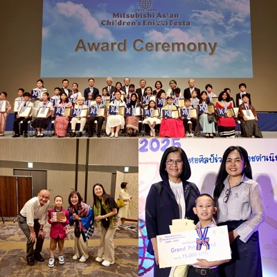 โดยน้องจุนจุน ด.ช.ปรินทร์ อารินทร์ นักเรียนชั้นประถมปีที่ 3 โรงเรียนประถมศึกษาธรรมศาสตร์ จว.ปทุมธานี ได้เข้ารับรางวัลชนะเลิศ (Grand Prix Award) ระดับนานาชาติ ภาพวาดฝีมือเด็กไทย บอกเล่าเรื่องราวชีวิตประจำวันภายใต้ “โครงการ Mitsubishi Asian Children’s Enikki Festa 2024-2025 ” ซึ่งโครงการนี้จัดขึ้นในทุก 2 ปี โดยความร่วมมือระหว่าง วธ.โดย สศร. และ National Federation of UNESCO Association in Japan (NFUA) จากประเทศในภูมิภาคเอเชียทั้งหมด 24 ประเทศ รับรางวัล ระหว่างวันที่ 30 กรกฏาคม ถึงวันที่ 3 สิงหาคม 2568 ณ เมืองโอซาก้า ประเทศญี่ปุ่น