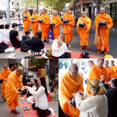 ชาวไทยในต่างแดนและชาวต่างชาติ ร่วมตักบาตรฟังธรรม กลางนครซิดนีย์ ออสเตรเลีย