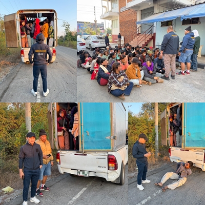 ล่าสุดเจ้าหน้าที่สืบสวน กองกำกับการ 2 บก.สส.สตม. ได้รับแจ้งว่ามีคนต่างด้าวลักลอบเข้าเมืองทางด้านชายแดน จังหวัดกาญจนบุรี จึงได้ทำการสืบสวนจนพิสูจน์ทราบเส้นทางการลักลอบพาคนต่างด้าวเข้ามาในประเทศ และจึงนำกำลังลงพื้นที่วางกำลังเพื่อจับกุม ในวันที่ 13 มกราคม 2569 เวลาประมาณ 07.30 น. เจ้าหน้าที่พบรถต้องสงสัยเป็นลักษณะรถกระบะตู้ทึบ วิ่งด้วยความเร็วสูงเข้าตัวเมือง จึงได้ติดตามไปอย่างกระชั้นชิด และได้แสดงตัวเข้าตรวจสอบ ผลการตรวจสอบพบว่า คนขับคือ นายสมชาย สัญชาติเมียนมา บรรทุกแรงงานต่างด้าวสัญชาติเมียนมา ชายหญิง รวมทั้งสิ้น 51 ราย จึงได้แจ้งข้อกล่าวหาและทำการจับกุมได้ที่บริเวณริมถนนแสงชูโต ต.ลาดหญ้า อ.เมืองกาญจนบุรี จว.กาญจนบุรี โดยกล่าวหาว่า ผู้ต้องหาที่ 1 (คนขับรถ) “โดยรู้ว่าเป็นคนต่างด้าวเข้ามาในราชอาณาจักรโดยฝ่าฝืน พ.ร.บ.คนเข้าเมืองฯ ให้เข้าพักอาศัย ซ่อนเร้น หรือช่วยเหลือด้วยประการใดๆ เพื่อให้คนต่างด้าวนั้นพ้นจากการจับกุม” (มาตรา 64 แห่ง พ.ร.บ.คนเข้าเมือง พ.ศ.2522) ผู้ต้องหาที่ 2-52 “เป็นบุคคลต่างด้าวอยู่ในราชอาณาจักรโดยไม่ได้รับอนุญาต” นำส่ง สภ.ลาดหญ้า ดำเนินคดี และจะได้สืบสวนขยายผลถึงผู้ร่วมขบวนการต่อไป