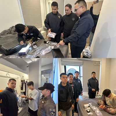 พร้อมทั้งตรวจยึด 1.ยาเสพติดประเภท เคตามีน ประมาณ 300 กรัม 2.ยาเสพติดประเภท ยาไอซ์ ประมาณ 100 กรัม 3.ไซริงค์ อุปกรณ์เสพยา หลายรายการ 4.โทรศัพท์มือถือ จำนวน 6 เครื่อง 5.คอมพิวเตอร์พกพา จำนวน 1 เครื่อง 6.CPU คอมพิวเตอร์ 1 เครื่อง 7.นาฬิกา กระเป๋าแบรนด์เนม รวม 6 รายการ 8.บัตรเครดิต จำนวน 2 ใบ โดยผู้ต้องหา 1-2 เข้ามาด้วยวีซ่า ผ.60 เพื่อการท่องเที่ยว แต่มามั่วสุมอยู่ในกลุ่มแก๊งค้ายาเสพติด ซึ่งผิดวัตถุประสงค์ไม่ใช่นักท่องเที่ยวที่ดี จึงได้เพิกถอนวีซ่า นำตัวผู้ถูกจับทั้งหมดพร้อมของกลางนำส่งพนักงานสอบสวน เพื่อดำเนินการตามกฎหมายต่อไป