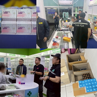 ภญ.สุภัทรา บุญเสริม เลขาธิการคณะกรรมการอาหารและยา กล่าวว่า อย. ได้เฝ้าระวังการขายยาอันตรายกลุ่มเสี่ยงโดยเฉพาะยาที่มีแนวโน้มนำไปใช้ในทางที่ผิด โดยส่วนใหญ่เป็นยาที่นำไปผสมสูตร 4×100 จากการตรวจสอบร้านขายยาที่ได้รับอนุญาต พบว่า ในช่วงปี 2567 – 2568 มีการอาศัยใบอนุญาตขายยาเพื่อขายยาอันตรายกลุ่มเสี่ยง จึงได้ขอกำลังจากกองกำกับการ 4 กองบังคับการปราบปรามการกระทำความผิดเกี่ยวกับการคุ้มครองผู้บริโภค (บก.ปคบ.) สืบสวนขยายผลหาเครือข่ายร้านขายยา จากการสืบสวนพบว่า ร้านขายยาที่ลักลอบขายยากลุ่มเสี่ยงจะมีพฤติการณ์การสั่งซื้อยาน้ำแก้แพ้ แก้ไอ หรือยาอันตรายกลุ่มเสี่ยงจากผู้รับอนุญาตผลิตหลายราย ภายในร้านมีการวางขายยาอื่นเพื่อบังหน้า บางแห่งพบยาหมดอายุ และบุคคลที่ขายยาไม่ใช่ผู้ประกอบวิชาชีพเภสัชกรรม เจ้าหน้าที่ กก.4 บก.ปคบ. จึงร่วมกับเจ้าหน้าที่ อย. เข้าตรวจสถานที่ขายยาของเครือข่ายและจับกุมผู้กระทำความผิดได้ในที่สุด จึงขอเตือนผู้ประกอบการที่ขออนุญาตเปิดร้านขายยาและเภสัชกรผู้มีหน้าที่ปฏิบัติการควรคำนึงถึงจริยธรรมในการประกอบวิชาชีพ และปฏิบัติให้ถูกต้องตามกฎหมาย สำหรับการดำเนินการกับเครือข่ายร้านขายยาทั้ง 7 แห่งนี้ ทาง อย.จะใช้มาตรการทางปกครองในการพักใช้ใบอนุญาตและดำเนินคดีกับผู้รับอนุญาต รวมถึงเสนอสภาเภสัชกรรมพิจารณาจรรยาบรรณต่อไป เพื่อไม่ให้เป็นแบบอย่างในการใช้ใบอนุญาตด้านยาเพื่อทำการขายยาไปใช้ผิดวัตถุประสงค์จนเป็นภัยต่อสังคม สำหรับการเฝ้าระวังการลักลอบผลิตยาปลอมหรือยาไม่มีทะเบียนตำรับยานั้น ทาง อย. ได้ประสานการทำงานร่วมกับ บก.ปคบ. มาโดยตลอด แต่ยังคงพบปัญหาการลักลอบผลิตอยู่ จึงขอให้ประชาชนช่วยเป็นหูเป็นตา แจ้งเบาะแสแหล่งผลิตหรือขายเพื่อลดการนำยาไปใช้ในทางที่ผิด จนเป็นสาเหตุของการเสพติดยาที่รุนแรงขึ้นตามมา สร้างความเดือดร้อนให้กับผู้ปกครอง คนในชุมชน และสังคม หากผู้ใดพบการลักลอบผลิต นำเข้า ขาย ผลิตภัณฑ์สุขภาพที่ผิดกฎหมาย สามารถแจ้งเบาะแสได้ที่สายด่วน อย. 1556 หรือ อีเมล์ 1556@fda.moph.go.th, หรือ Line: @FDAThai หรือ ตู้ปณ.1556 ปณฝ. กระทรวงสาธารณสุข จ.นนทบุรี 1100