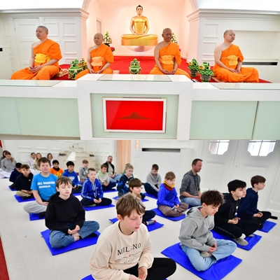 วันที่ 21 มีนาคม 2569 พระครูสมุห์สนิทวงศ์ วุฑฺฒิวํโส ผู้อำนวยการสำนักสื่อสารองค์กร วัดพระธรรมกาย จังหวัดปทุมธานี เปิดเผยว่า วัดพระธรรมกายคอร์ซัวร์ ลุสท์สโกว ประเทศเดนมาร์ก ได้เปิดบ้านต้อนรับคณะครูและนักเรียนจากโรงเรียน Broskolen ในกิจกรรมเรียนรู้พระพุทธศาสนาและฝึกสมาธิเบื้องต้น ซึ่งเป็นส่วนหนึ่งของโครงการเผยแผ่พระพุทธศาสนาวิชชาธรรมกายสู่ชาวท้องถิ่น โดยมุ่งเน้นการให้ความรู้ด้านพุทธประวัติ การสวดมนต์ และวัฒนธรรมชาวพุทธผ่านประสบการณ์จริง สร้างความตื่นตาตื่นใจให้กับเยาวชนชาวเดนมาร์กที่ได้สัมผัสกับการถวายภัตตาหารแด่พระภิกษุสงฆ์และการเรียนรู้วิถีพุทธอย่างใกล้ชิดในบรรยากาศที่อบอุ่นและเป็นกันเอง