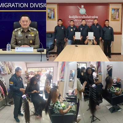 บก.ตม.1 บุกจับสาวผิวสีชาวคองโกคาร้านเสริมสวย ขณะทำผมให้ลูกค้าต่างชาติ ดำเนินคดีฐานประกอบอาชีพต้องห้าม แย่งงานคนไทย