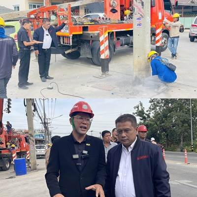 ทางด้าน นายธวัชชัย ดำเนินศิลป์ รองผู้จัดการการไฟฟ้าด้านเทคนิคส่วนภูมิภาค กล่าวเสริมว่า การที่เราร่วมมือกับทาง อบต.คลองสาม กับการไฟฟ้าส่วนภูมิภาค ในเรื่องการของปรับภูมิทัศน์ โดยอันนี้เราได้ทำการเป็นเฟสแรกในระยะทาง 2 กิโลเมตร เราเอาไฟฟ้าแรงสูงลงดิน และไฟฟ้าแรงต่ำลงดินทั้งหมด โดยวันนี้เราเริ่มทำการติดเสาไฟแล้ว และจะพยายามเคลียร์ให้ได้มากที่สุด ก่อนสิ้นปี แต่ก็ยังมีบางจุดอาจจะยังลงไม่ได้ เนื่องจากยังมีสายไฟที่จะต้องปรับเข้าตัวอาคารที่ยังไม่สามารถที่จะตัดได้ โดยส่วนของสายสื่อสาร เราก็ได้เรียกผู้ประกอบการทั้งหมดมาพูดคุยเรียบร้อยแล้วโดยเราได้มีการบูรณาการร่วมกัน ในส่วนเรื่องถนนเป็นหลุมเป็นบ่อ ทางเรายังอยู่ในสัญญากับผู้ว่าจ้างรับเหมา ก็คือถ้าเราเอาสายไฟฟ้าลงดินเสร็จเรียบร้อยแล้ว เราก็จะทำการเคลียร์ถนนคืนสภาพให้เหมือนเดิมทุกอย่าง แล้วตอนนี้ก็ยังมีเรื่องของประปาที่มีการวางท่อร่วมกันอยู่ ซึ่งเราก็อยากเรียนกับพี่น้องประชาชน ว่าทางการไฟฟ้า ร่วมมือกับทาง อบต.คลองสาม ก็หมายมั่นปั้นมือว่า เราจะทำถนนเส้นนี้เป็นถนนที่มีภูมิทัศน์ที่ดีแล้วก็เสาสายที่รกรุงรัง ก็จะเคลียร์ให้สะอาด แล้วก็ถนนก็จะสวยงาม ยืนยันกับพี่น้องประชาชนอีกครั้งว่าจะทำถนนเส้นนี้ให้สายงามและมีความปลอดภัยให้มากที่สุด