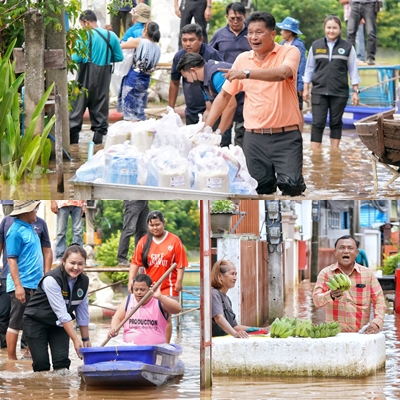 ปทุมธานี อดีต สส.ฮะ”ลุยน้ำมอบถุงยังชีพ 800 ชุดให้กำลังใจผู้ประสบภัยน้ำท่วมสามโคก