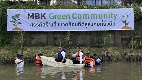 วันที่ 21 เมษายน 2569 ณ ท่าเรือริเวอร์เดล มารีน่า ศูนย์กลางและผู้ให้บริการด้านเรือและกิจกรรมทางน้ำครบวงจร ต.บางกระดี อ.เมือง จ.ปทุมธานี นายเอกวิทย์ มีเพียร ผู้ว่าราชการจังหวัดปทุมธานี นายธวัชชัย อึ้งอัมพรวิไล นายกเทศบาลเมืองบางกระดี นายพงษ์ศักดิ์ ศัพทเสน ประธานเจ้าหน้าที่บริหาร 1 สำนักกรรมการผู้อำนวยการ บริษัท เอ็ม บี เค จำกัด (มหาชน) นายปราโมทย์ เกตุทอง ประธานเจ้าหน้าที่บริหารออกแบบและปฏิบัติการงานโครงการ บริษัท กรีน เอเลเมนท์ จำกัด ในเครือเอ็ม บี เค จัดโครงการ MBK Green Community สรรค์สร้างสิ่งแวดล้อมที่ดีสู่สังคมที่ยั่งยืน ปลูกต้นโกงกาง ต้นลำพู ริมแม่น้ำเจ้าพระยา ฟื้นฟูระบบนิเวศ เพิ่มพื้นที่สีเขียวริมน้ำเจ้าพระยา ป้องกันการกัดเซาะชายฝั่งจากคลื่นลมพายุและสร้างสมดุลทางธรรมชาติ โดยร่วมมือกับภาครัฐและพันธมิตรภาคเอกชน