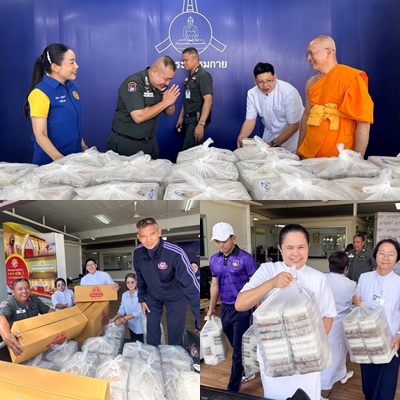 วันที่ 20 ตุลาคม 2568 ณ ศูนย์สื่อมวลชน วัดพระธรรมกาย อำเภอคลองหลวง จังหวัดปทุมธานี พระครูวิบูลนิติธรรม (ไพบูลย์ ธมฺมวิปุโล) ผู้ช่วยเจ้าอาวาสวัดพระธรรมกาย ประธานกรรมการฝ่ายสาธารณสงเคราะห์ วัดพระธรรมกาย ส่งมอบอาหารปรุงสุกใหม่ ขนมปัง และน้ำดื่ม จำนวน 1,300 ชุด พร้อมชุดเครื่องดื่มร้อน/เย็นและขนมปัง จำนวน 500 ชุด แก่ พล.ต.ต.จักรเพชร เพชรพลอยนิล ผู้บังคับการตำรวจตระเวนชายแดนภาค 1 และคณะผู้บริหาร ประกอบด้วย พ.ต.อ.เทวินทร์ ขุนแก้ว, พ.ต.อ.ทวีศักดิ์ จินดาศักดิ์ และ พ.ต.อ.ณัฐวรรธฐ์ ภูวัฒนติกานต์ รองผู้บังคับการตำรวจตระเวนชายแดนภาค 1 การมอบอาหาร ขนมปังและเครื่องดื่มในครั้งนี้ มีวัตถุประสงค์เพื่อสนับสนุนกำลังพลและนักเรียนที่ร่วมเตรียมงานและวันงาน ตลอด 4 วัน โดยกองบังคับการตำรวจตระเวนชายแดนภาค 1 ได้กำหนดจัดพิธีถวายราชสักการะ พระราชาอนุสาวรีย์สมเด็จพระศรีนครินทราบรมราชชนนี เนื่องในโอกาสวันคล้ายวันพระราชสมภพ ประจำปี 2568 ซึ่งจะจัดขึ้นในวันอังคารที่ 21 ตุลาคม 2568 เวลา 07.00 น. เป็นต้นไป ณ กองบังคับการตำรวจตระเวนชายแดน ภาค 1 ตำบลคลองห้า อำเภอคลองหลวง จังหวัดปทุมธานี