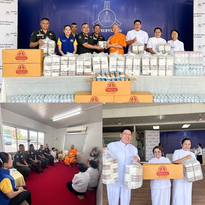 วันที่ 20 ตุลาคม 2568 ณ ศูนย์สื่อมวลชน วัดพระธรรมกาย อำเภอคลองหลวง จังหวัดปทุมธานี พระครูวิบูลนิติธรรม (ไพบูลย์ ธมฺมวิปุโล) ผู้ช่วยเจ้าอาวาสวัดพระธรรมกาย ประธานกรรมการฝ่ายสาธารณสงเคราะห์ วัดพระธรรมกาย ส่งมอบอาหารปรุงสุกใหม่ ขนมปัง และน้ำดื่ม จำนวน 1,300 ชุด พร้อมชุดเครื่องดื่มร้อน/เย็นและขนมปัง จำนวน 500 ชุด แก่ พล.ต.ต.จักรเพชร เพชรพลอยนิล ผู้บังคับการตำรวจตระเวนชายแดนภาค 1 และคณะผู้บริหาร ประกอบด้วย พ.ต.อ.เทวินทร์ ขุนแก้ว, พ.ต.อ.ทวีศักดิ์ จินดาศักดิ์ และ พ.ต.อ.ณัฐวรรธฐ์ ภูวัฒนติกานต์ รองผู้บังคับการตำรวจตระเวนชายแดนภาค 1 การมอบอาหาร ขนมปังและเครื่องดื่มในครั้งนี้ มีวัตถุประสงค์เพื่อสนับสนุนกำลังพลและนักเรียนที่ร่วมเตรียมงานและวันงาน ตลอด 4 วัน โดยกองบังคับการตำรวจตระเวนชายแดนภาค 1 ได้กำหนดจัดพิธีถวายราชสักการะ พระราชาอนุสาวรีย์สมเด็จพระศรีนครินทราบรมราชชนนี เนื่องในโอกาสวันคล้ายวันพระราชสมภพ ประจำปี 2568 ซึ่งจะจัดขึ้นในวันอังคารที่ 21 ตุลาคม 2568 เวลา 07.00 น. เป็นต้นไป ณ กองบังคับการตำรวจตระเวนชายแดน ภาค 1 ตำบลคลองห้า อำเภอคลองหลวง จังหวัดปทุมธานี