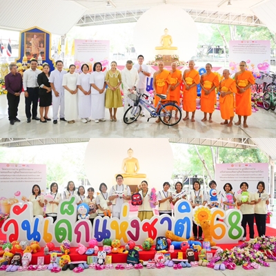 วันที่ 8 มกราคม 2568 พระครูปลัดรัตนวีรวัฒน์ (รังสฤษดิ์ อิทฺธิจินฺตโก) เจ้าอาวาสวัดพระธรรมกาย เมตตาเป็นประธานสงฆ์ ในพิธีมอบของขวัญเพื่อสนับสนุนการจัดงานวันเด็กประจำปี พ.ศ.2568 แด่องค์กรภาคีเครือข่าย “บวร – บ้าน วัด โรงเรียน/ราชการ” อาทิ โรงเรียนในพื้นที่จังหวัดปทุมธานี, องค์การบริหารส่วนตำบล, สภาเด็กและเยาวชนจังหวัดปทุมธานี, นิติบุคคลหมู่บ้าน และผู้นำชุมชนต่าง ๆ กว่า 200 องค์กร เป็นสาธารณสงเคราะห์ มีวัตถุประสงค์เพื่อสนับสนุนการทำหน้าที่ของหน่วยงานต่าง ๆ ที่ได้ปลูกฝังเยาวชนให้เป็นเด็กเก่งและดีมาอย่างต่อเนื่อง โดยได้รับเกียรติจาก นางสาวอภิสรา เกษอินทร์ นายอำเภอคลองหลวง เดินทางมาเป็นประธานฆราวาส พร้อมด้วยนายองอาจ ณฐ ธรรมนิทา ร่วมมอบของขวัญในครั้งนี้