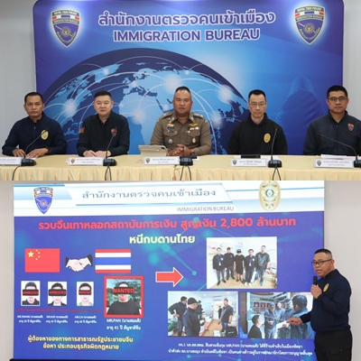 สตม.แถลงจับต่างชาติ 4 ราย หนีคดีกบดานไทย รวบจีนเทาตุ๋นสถาบันการเงิน 2,800 ล้านบาท -จับ 3 มังกรจีนหลอกเพื่อนส่งแก๊งคอลเซ็นเตอร์ -สืบตม.รวบหนุ่มไต้หวันหนีหมายจับคดียาเสพติด -จับหนุ่มแดนมะกะโรนีลักลอบนำเข้ายาเสพติดในบ้านเกิด