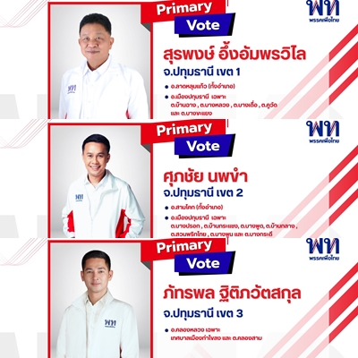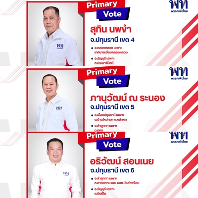 เพื่อไทย ปทุมธานี จัดทำไพรมารีโหวต ว่าที่ผู้สมัคร ส.ส.ทั้ง 8 เขต